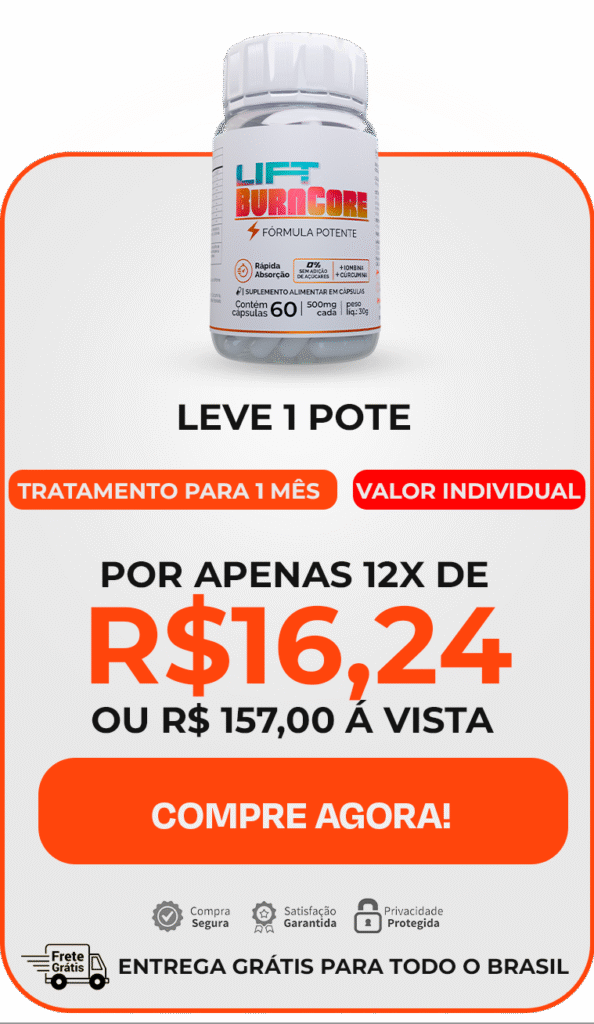 Com Lift BurnCore, isso não é só um sonho, é uma realidade. Nosso produto foi criado para quem quer emagrecer de forma prática, leve e, acima de tudo, possível. Chega de promessas vazias ou métodos que exigem sacrifícios.